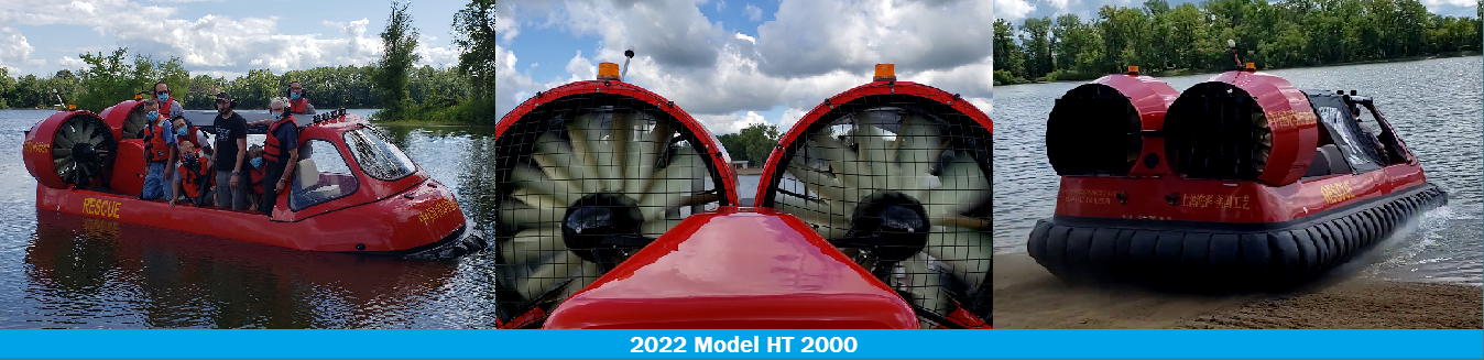 Integrated lift and thrust air system with Neoprene-Coated® nylon skirts, and solid glass skid pads. Hull made entirely o f hand-laid cloth and chopmat and buoyance Marine quality 2.2 lb density polyurethane foam.